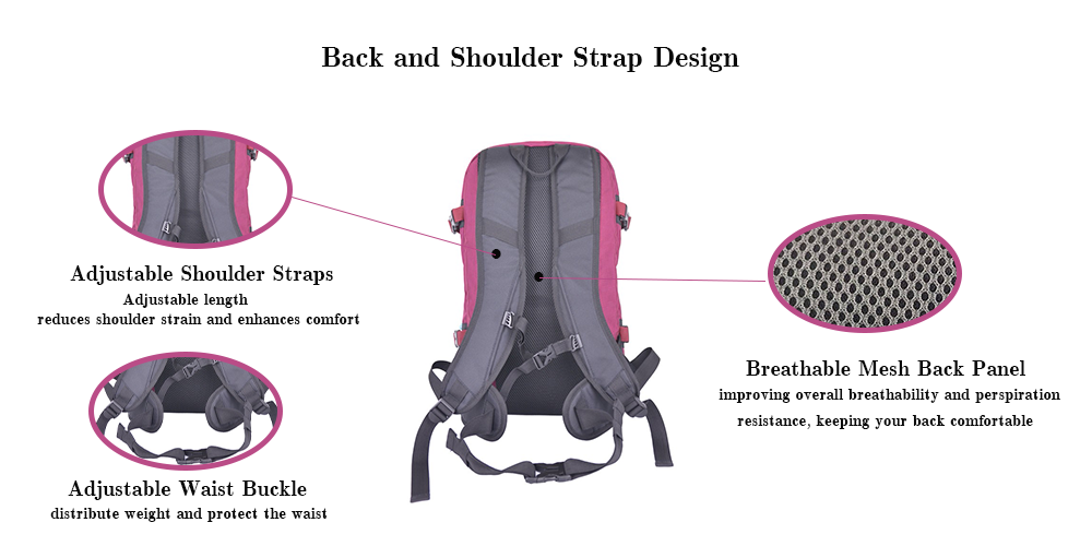 The adjustable shoulder straps allow for custom length adjustments, reducing shoulder strain and ensuring a comfortable fit even on long hikes. The waist buckle effectively distributes weight during exercise or carrying heavy loads, protecting your waist from injury.