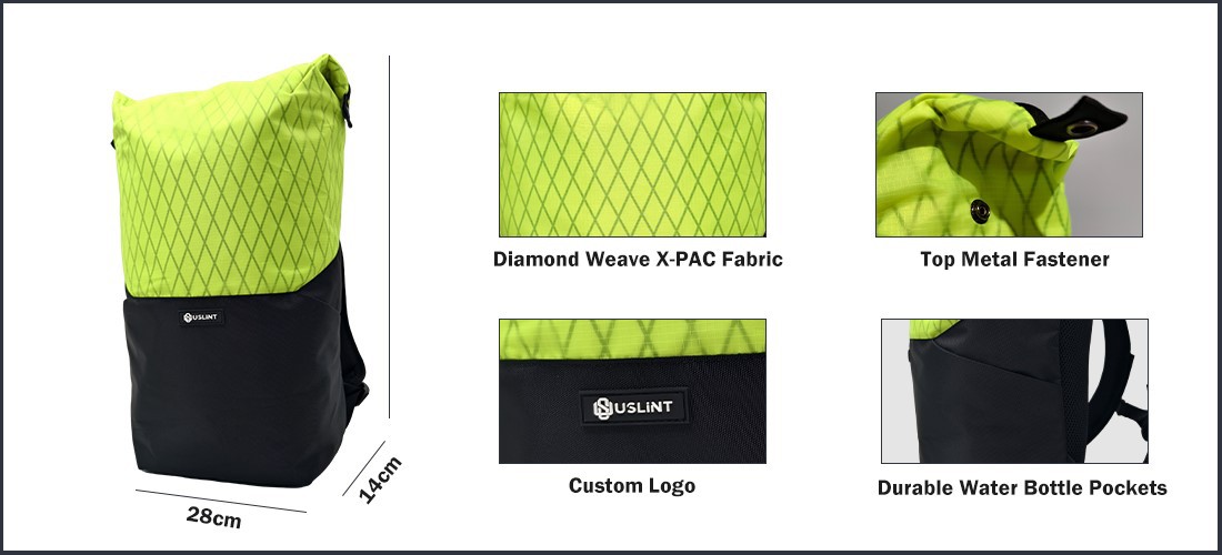 This USLINT ultra lightweight backpack for travel is made with X-PAC fabric, which boasts excellent abrasion resistance, water resistance, and easy cleaning. Made from X-PAC, this lightweight travel backpack can withstand the wear and tear of daily use and is extremely easy to carry and use. We specifically used a diamond weave technique for this travel backpack, effectively enhancing its structural strength (such as tear and abrasion resistance), functionality (such as wrinkle resistance and elasticity), breathability, and aesthetics, presenting a rich texture and layering.